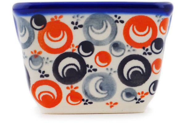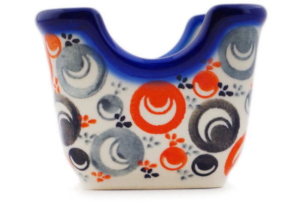 This Red Peacock Eye 3" Sugar Packet Holder was handmade and hand decorated in Boleslawiec, Poland by skilled artisans according to old traditional methods. This Polish stoneware is microwave, dishwasher, freezer, and oven safe up to 480°F. It does not contain lead or cadmium. It is part of the Red Peacock Eye Collection.