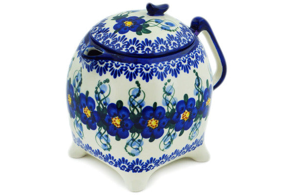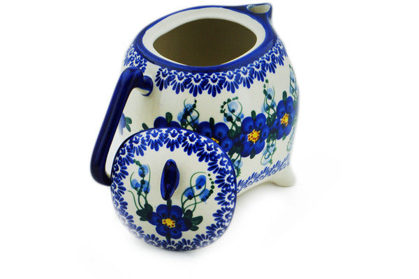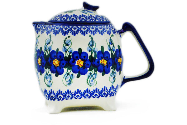 This Blue Wildflower 62 oz Tea or Coffee Pot was handmade and hand decorated in Boleslawiec, Poland by skilled artisans according to old traditional methods. This is a Polish pottery Signature Unikat, which means that it has been hand painted with both sponges and brushes and it is signed by the artist who painted it. Unikat pieces are the most intricate works of art. Larger Unikat items take hours of very careful work to finish. This Polish stoneware is microwave, dishwasher, freezer, and oven safe up to 480°F. It does not contain lead or cadmium. It is part of the Blue Wildflower Collection.