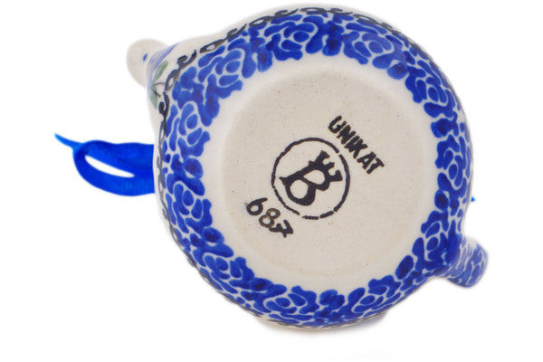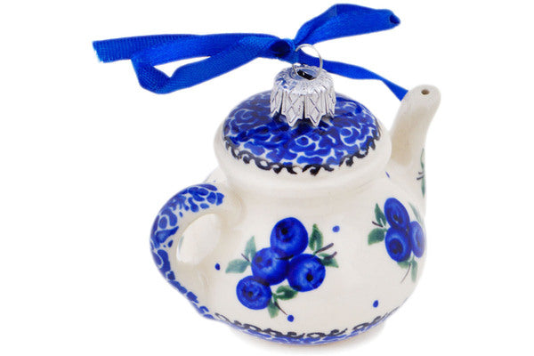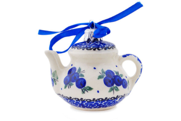 This Lovely Blueberries 3" Teapot Ornament was handmade and hand decorated in Boleslawiec, Poland by skilled artisans according to old traditional methods. This Polish stoneware is microwave, dishwasher, freezer, and oven safe up to 480°F. It does not contain lead or cadmium. It is part of the Lovely Blueberries Collection.