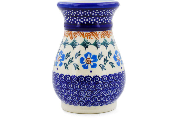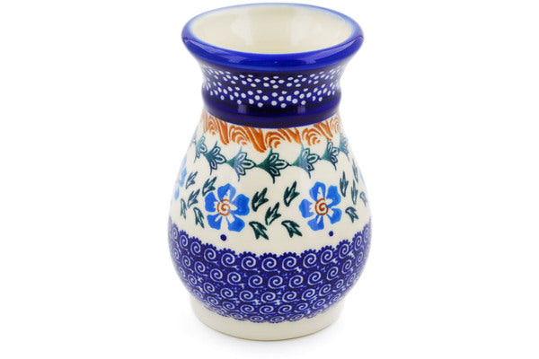 This Blue Cornflower 5" Vase was handmade and hand decorated in Boleslawiec, Poland by skilled artisans according to old traditional methods. This Polish stoneware is microwave, dishwasher, freezer, and oven safe up to 480°F. It does not contain lead or cadmium. It is part of the Blue Cornflower Collection.