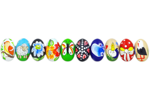 This Mix 2" Wooden Egg Set of 10 was handmade and hand decorated in Boleslawiec, Poland by skilled artisans according to old traditional methods. This is a Polish pottery Signature Unikat, which means that it has been hand painted with both sponges and brushes and it is signed by the artist who painted it. Unikat pieces are the most intricate works of art. Larger Unikat items take hours of very careful work to finish. This Polish stoneware is microwave, dishwasher, freezer, and oven safe up to 480°F. It does not contain lead or cadmium. It is part of the Mix Collection.