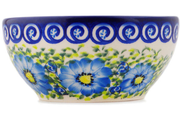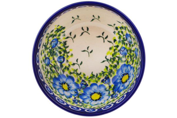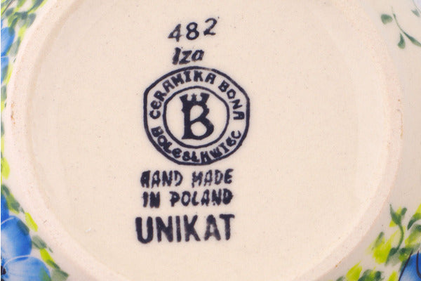 This Gorgeous Morning Glory 5" Bowl was handmade and hand decorated in Boleslawiec, Poland by skilled artisans according to old traditional methods. This is a Polish pottery Signature Unikat, which means that it has been hand painted with both sponges and brushes and it is signed by the artist who painted it. Unikat pieces are the most intricate works of art. Larger Unikat items take hours of very careful work to finish. This Polish stoneware is microwave, dishwasher, freezer, and oven safe up to 480°F. It does not contain lead or cadmium. It is part of the Gorgeous Morning Glory Collection.