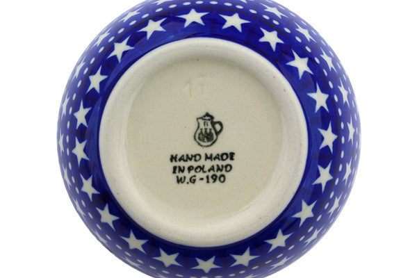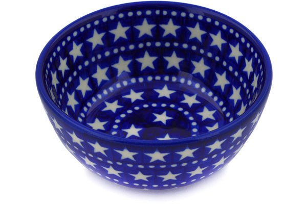 This Midnight Stars 5" Bowl was handmade and hand decorated in Boleslawiec, Poland by skilled artisans according to old traditional methods. This Polish stoneware is microwave, dishwasher, freezer, and oven safe up to 480°F. It does not contain lead or cadmium. It is part of the Midnight Stars Collection.