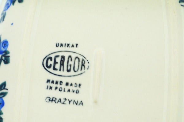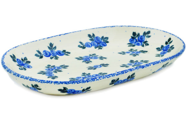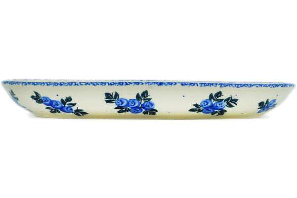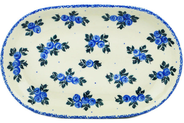This Blue Berry Special 9" Platter was handmade and hand decorated in Boleslawiec, Poland by skilled artisans according to old traditional methods. This is a Polish pottery Signature Unikat, which means that it has been hand painted with both sponges and brushes and it is signed by the artist who painted it. Unikat pieces are the most intricate works of art. Larger Unikat items take hours of very careful work to finish. This Polish stoneware is microwave, dishwasher, freezer, and oven safe up to 480°F. It does not contain lead or cadmium. It is part of the Blue Berry Special Collection.