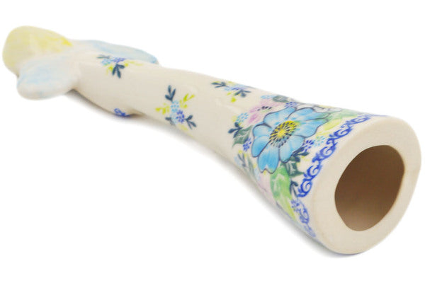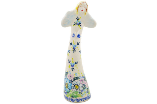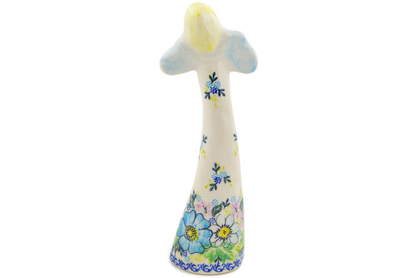 This Robins Egg 10" Angel Figurine was handmade and hand decorated in Boleslawiec, Poland by skilled artisans according to old traditional methods. This is a Polish pottery Signature Unikat, which means that it has been hand painted with both sponges and brushes and it is signed by the artist who painted it. Unikat pieces are the most intricate works of art. Larger Unikat items take hours of very careful work to finish. This Polish stoneware is microwave, dishwasher, freezer, and oven safe up to 480°F. It does not contain lead or cadmium. It is part of the Robins Egg Collection.
