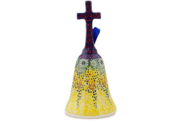 This Sunshine Grotto 8" Bell Ornament was handmade and hand decorated in Boleslawiec, Poland by skilled artisans according to old traditional methods. This is a Polish pottery Signature Unikat, which means that it has been hand painted with both sponges and brushes and it is signed by the artist who painted it. Unikat pieces are the most intricate works of art. Larger Unikat items take hours of very careful work to finish. This Polish stoneware is microwave, dishwasher, freezer, and oven safe up to 480°F. It does not contain lead or cadmium. It is part of the Sunshine Grotto Collection.