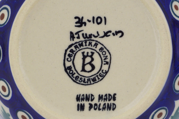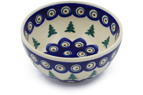 This Peacock Pines 5" Bowl was handmade and hand decorated in Boleslawiec, Poland by skilled artisans according to old traditional methods. This Polish stoneware is microwave, dishwasher, freezer, and oven safe up to 480°F. It does not contain lead or cadmium. It is part of the Peacock Pines Collection.