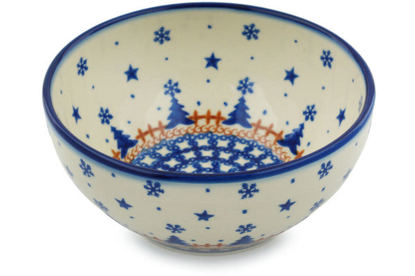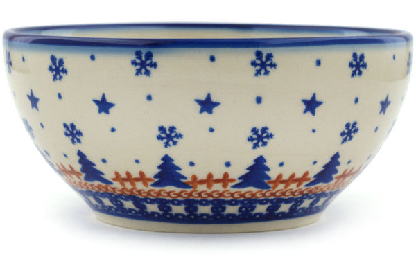 This Winter Snow 6" Bowl was handmade and hand decorated in Boleslawiec, Poland by skilled artisans according to old traditional methods. This Polish stoneware is microwave, dishwasher, freezer, and oven safe up to 480°F. It does not contain lead or cadmium. It is part of the Winter Snow Collection.