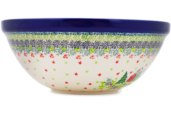 This Green Village 9" Bowl was handmade and hand decorated in Boleslawiec, Poland by skilled artisans according to old traditional methods. This is a Polish pottery Signature Unikat, which means that it has been hand painted with both sponges and brushes and it is signed by the artist who painted it. Unikat pieces are the most intricate works of art. Larger Unikat items take hours of very careful work to finish. This Polish stoneware is microwave, dishwasher, freezer, and oven safe up to 480°F. It does not contain lead or cadmium. It is part of the Green Village Collection.