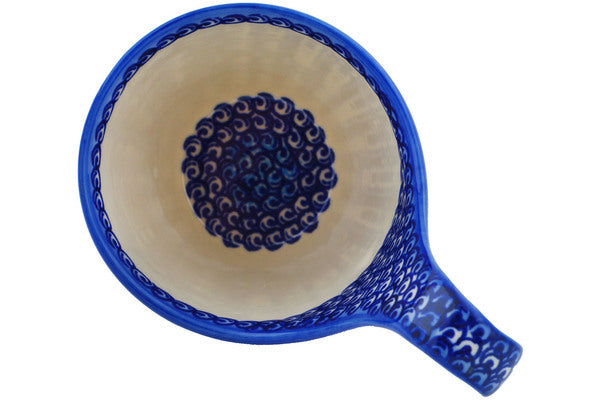 This Frosty Bliss 7" Bowl with Loop-Handle was handmade and hand decorated in Boleslawiec, Poland by skilled artisans according to old traditional methods. This is a Polish pottery Signature Unikat, which means that it has been hand painted with both sponges and brushes and it is signed by the artist who painted it. Unikat pieces are the most intricate works of art. Larger Unikat items take hours of very careful work to finish. This Polish stoneware is microwave, dishwasher, freezer, and oven safe up to 480°F. It does not contain lead or cadmium. It is part of the Frosty Bliss Collection.