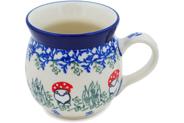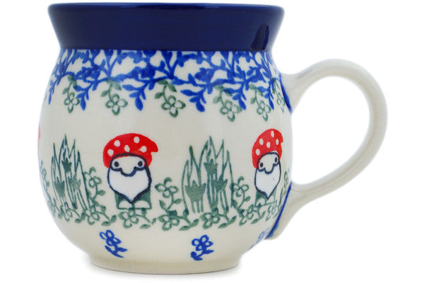This Dancing Gnome 8 oz Bubble Mug was handmade and hand decorated in Boleslawiec, Poland by skilled artisans according to old traditional methods. This Polish stoneware is microwave, dishwasher, freezer, and oven safe up to 480°F. It does not contain lead or cadmium. It is part of the Dancing Gnome Collection.