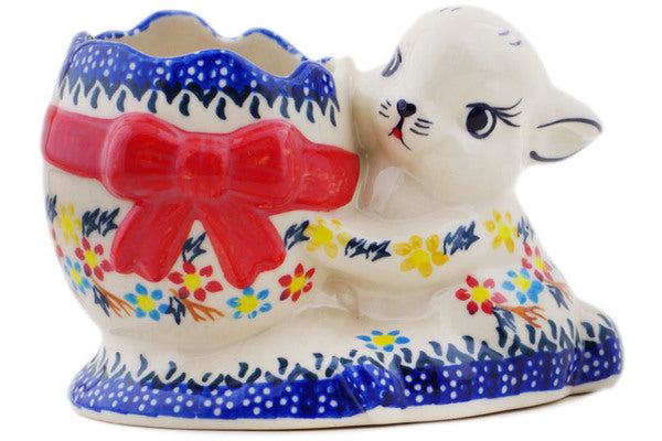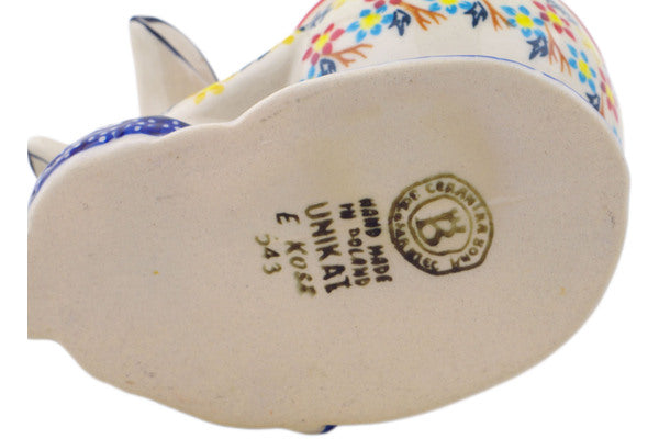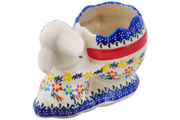 This Spring Flower Ring 6" Bunny Shaped Jar was handmade and hand decorated in Boleslawiec, Poland by skilled artisans according to old traditional methods. This Polish stoneware is microwave, dishwasher, freezer, and oven safe up to 480°F. It does not contain lead or cadmium. It is part of the Spring Flower Ring Collection.