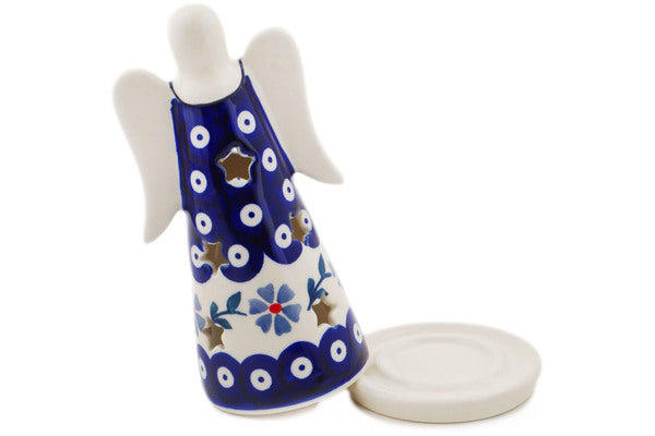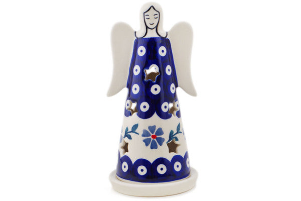 This Peacock Forget-Me-Not 6" Candle Holder was handmade and hand decorated in Boleslawiec, Poland by skilled artisans according to old traditional methods. This Polish stoneware is microwave, dishwasher, freezer, and oven safe up to 480°F. It does not contain lead or cadmium. It is part of the Peacock Forget-Me-Not Collection.