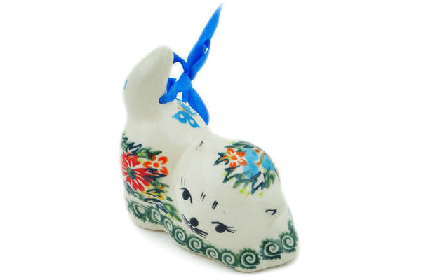 This Ring Of Flowers 4 oz Cat Ornament was handmade and hand decorated in Boleslawiec, Poland by skilled artisans according to old traditional methods. This is a Polish pottery Signature Unikat, which means that it has been hand painted with both sponges and brushes and it is signed by the artist who painted it. Unikat pieces are the most intricate works of art. Larger Unikat items take hours of very careful work to finish. This Polish stoneware is microwave, dishwasher, freezer, and oven safe up to 480°F. It does not contain lead or cadmium. It is part of the Ring Of Flowers Collection.