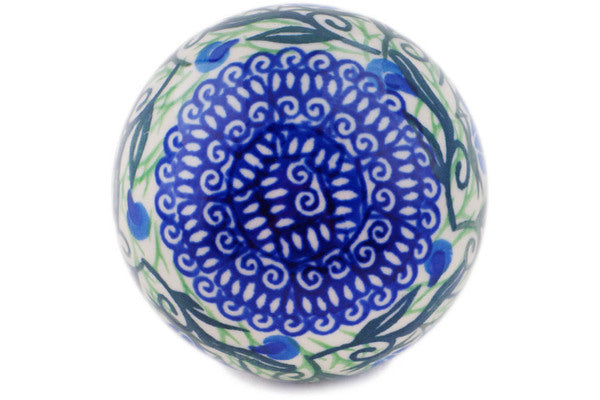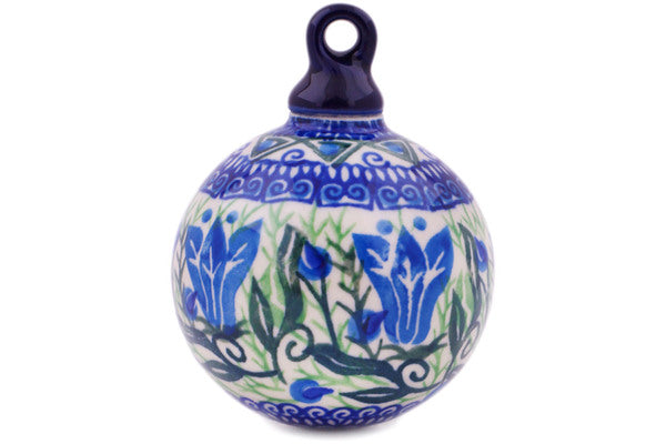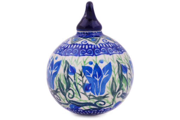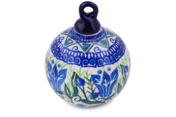 This Gentian Wreath 3" Christmas Ball Ornament was handmade and hand decorated in Boleslawiec, Poland by skilled artisans according to old traditional methods. This is a Polish pottery Signature Unikat, which means that it has been hand painted with both sponges and brushes and it is signed by the artist who painted it. Unikat pieces are the most intricate works of art. Larger Unikat items take hours of very careful work to finish. This Polish stoneware is microwave, dishwasher, freezer, and oven safe up to 480°F. It does not contain lead or cadmium. It is part of the Gentian Wreath Collection.
