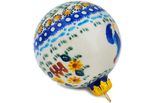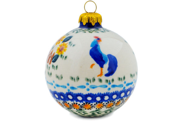 This Rooster Madness 4" Christmas Ball Ornament was handmade and hand decorated in Boleslawiec, Poland by skilled artisans according to old traditional methods. This is a Polish pottery Signature Unikat, which means that it has been hand painted with both sponges and brushes and it is signed by the artist who painted it. Unikat pieces are the most intricate works of art. Larger Unikat items take hours of very careful work to finish. This Polish stoneware is microwave, dishwasher, freezer, and oven safe up to 480°F. It does not contain lead or cadmium. It is part of the Rooster Madness Collection.