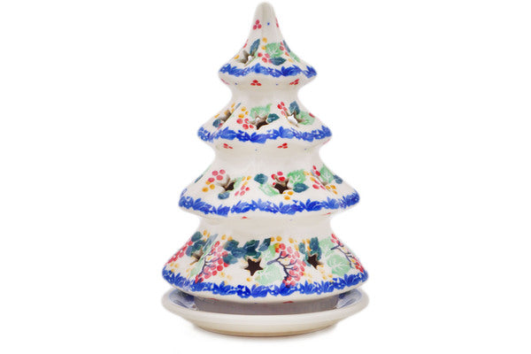 This Berry Branches 7" Christmas Tree Candle Holder was handmade and hand decorated in Boleslawiec, Poland by skilled artisans according to old traditional methods. This Polish stoneware is microwave, dishwasher, freezer, and oven safe up to 480°F. It does not contain lead or cadmium. It is part of the Berry Branches Collection.