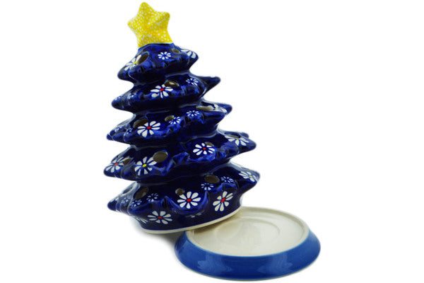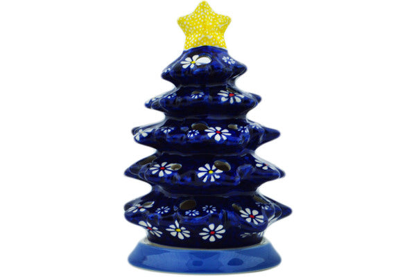 This Daisy Jazz 8" Christmas Tree Candle Holder was handmade and hand decorated in Boleslawiec, Poland by skilled artisans according to old traditional methods. This is a Polish pottery Signature Unikat, which means that it has been hand painted with both sponges and brushes and it is signed by the artist who painted it. Unikat pieces are the most intricate works of art. Larger Unikat items take hours of very careful work to finish. This Polish stoneware is microwave, dishwasher, freezer, and oven safe up to 480°F. It does not contain lead or cadmium. It is part of the Daisy Jazz Collection.