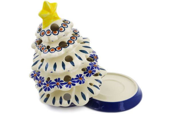 This Peacock 8" Christmas Tree Candle Holder was handmade and hand decorated in Boleslawiec, Poland by skilled artisans according to old traditional methods. This Polish stoneware is microwave, dishwasher, freezer, and oven safe up to 480°F. It does not contain lead or cadmium. It is part of the Peacock Collection.
