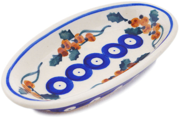 This Yellow Holly Berries 6" Condiment Dish was handmade and hand decorated in Boleslawiec, Poland by skilled artisans according to old traditional methods. This Polish stoneware is microwave, dishwasher, freezer, and oven safe up to 480°F. It does not contain lead or cadmium. It is part of the Yellow Holly Berries Collection.