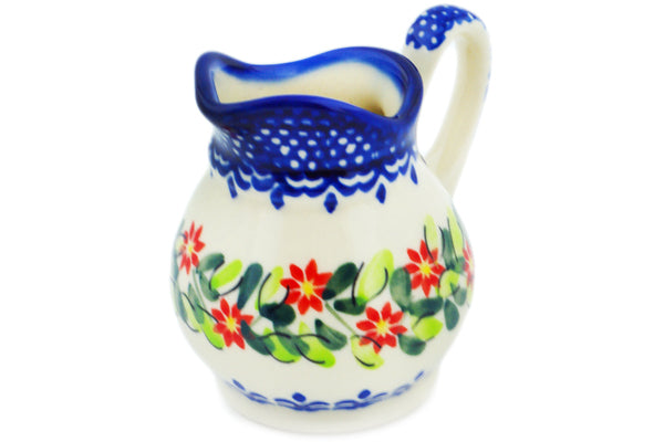 This Elegant Garland 4 oz Creamer was handmade and hand decorated in Boleslawiec, Poland by skilled artisans according to old traditional methods. This Polish stoneware is microwave, dishwasher, freezer, and oven safe up to 480°F. It does not contain lead or cadmium. It is part of the Elegant Garland Collection.