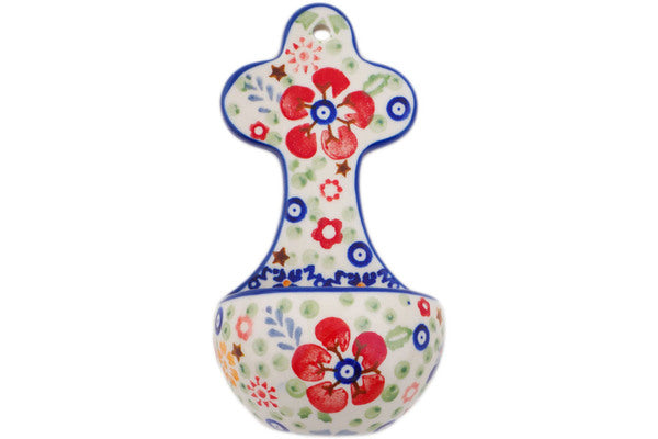 This Botanical Sprinkles 5" Cross was handmade and hand decorated in Boleslawiec, Poland by skilled artisans according to old traditional methods. This is a Polish pottery Signature Unikat, which means that it has been hand painted with both sponges and brushes and it is signed by the artist who painted it. Unikat pieces are the most intricate works of art. Larger Unikat items take hours of very careful work to finish. This Polish stoneware is microwave, dishwasher, freezer, and oven safe up to 480°F. It does not contain lead or cadmium. It is part of the Botanical Sprinkles Collection.