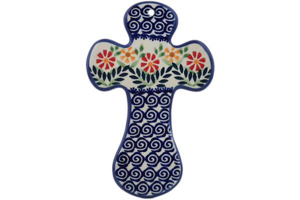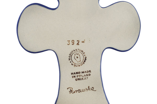 This Wave Of Flowers 7" Cross was handmade and hand decorated in Boleslawiec, Poland by skilled artisans according to old traditional methods. This Polish stoneware is microwave, dishwasher, freezer, and oven safe up to 480°F. It does not contain lead or cadmium. It is part of the Wave Of Flowers Collection.
