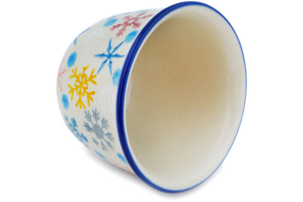 This Vintage Snow Fall 3 oz Cup was handmade and hand decorated in Boleslawiec, Poland by skilled artisans according to old traditional methods. This is a Polish pottery Signature Unikat, which means that it has been hand painted with both sponges and brushes and it is signed by the artist who painted it. Unikat pieces are the most intricate works of art. Larger Unikat items take hours of very careful work to finish. This Polish stoneware is microwave, dishwasher, freezer, and oven safe up to 480°F. It does not contain lead or cadmium. It is part of the Vintage Snow Fall Collection.