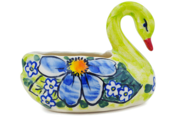 This Beautiful Dream 4" Swan Jar was handmade and hand decorated in Boleslawiec, Poland by skilled artisans according to old traditional methods. This is a Polish pottery Signature Unikat, which means that it has been hand painted with both sponges and brushes and it is signed by the artist who painted it. Unikat pieces are the most intricate works of art. Larger Unikat items take hours of very careful work to finish. This Polish stoneware is microwave, dishwasher, freezer, and oven safe up to 480°F. It does not contain lead or cadmium. It is part of the Beautiful Dream Collection.
