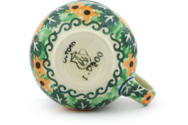 This Red Impatiens Circle 2 oz Espresso Cup was handmade and hand decorated in Boleslawiec, Poland by skilled artisans according to old traditional methods. This is a Polish pottery Signature Unikat, which means that it has been hand painted with both sponges and brushes and it is signed by the artist who painted it. Unikat pieces are the most intricate works of art. Larger Unikat items take hours of very careful work to finish. This Polish stoneware is microwave, dishwasher, freezer, and oven safe up to 480°F. It does not contain lead or cadmium. It is part of the Red Impatiens Circle Collection.