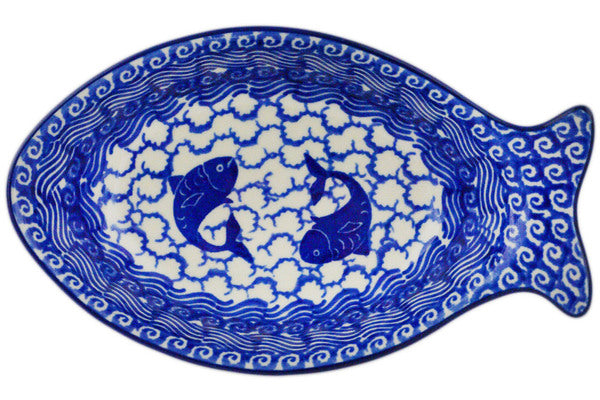 This Dancing Fish 6" Fish Shaped Platter was handmade and hand decorated in Boleslawiec, Poland by skilled artisans according to old traditional methods. This Polish stoneware is microwave, dishwasher, freezer, and oven safe up to 480°F. It does not contain lead or cadmium. It is part of the Dancing Fish Collection.