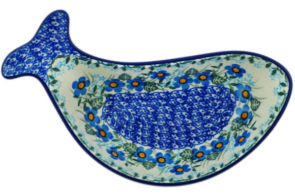 This Blue Joy 9" Fish Shaped Platter was handmade and hand decorated in Boleslawiec, Poland by skilled artisans according to old traditional methods. This Polish stoneware is microwave, dishwasher, freezer, and oven safe up to 480°F. It does not contain lead or cadmium. It is part of the Blue Joy Collection.