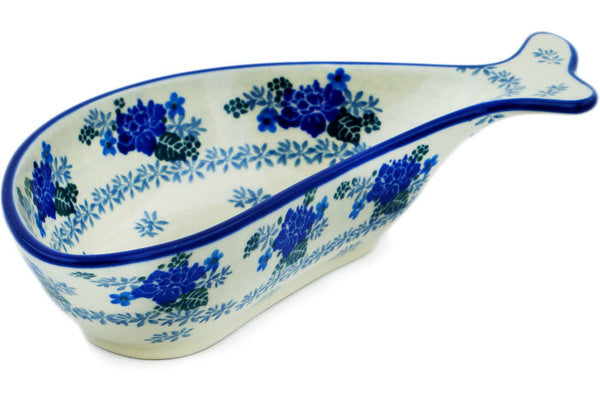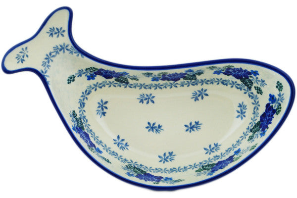 This Cornflower Wind 9" Fish Shaped Platter was handmade and hand decorated in Boleslawiec, Poland by skilled artisans according to old traditional methods. This is a Polish pottery Signature Unikat, which means that it has been hand painted with both sponges and brushes and it is signed by the artist who painted it. Unikat pieces are the most intricate works of art. Larger Unikat items take hours of very careful work to finish. This Polish stoneware is microwave, dishwasher, freezer, and oven safe up to 480°F. It does not contain lead or cadmium. It is part of the Cornflower Wind Collection.