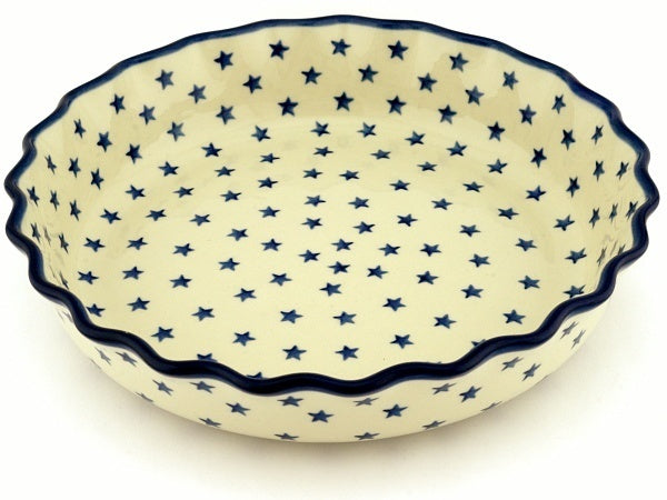 This Starburst Americana 11" Fluted Pie Dish was handmade and hand decorated in Boleslawiec, Poland by skilled artisans according to old traditional methods. This Polish stoneware is microwave, dishwasher, freezer, and oven safe up to 480°F. It does not contain lead or cadmium. It is part of the Starburst Americana Collection.