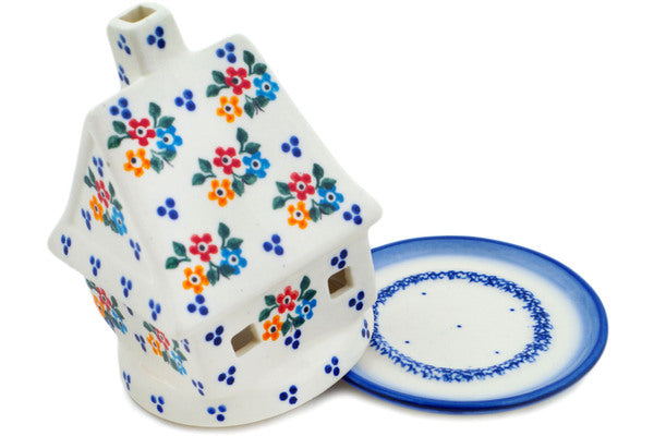 This Sweet Clusters 5" House Shaped Candle Holder was handmade and hand decorated in Boleslawiec, Poland by skilled artisans according to old traditional methods. This is a Polish pottery Signature Unikat, which means that it has been hand painted with both sponges and brushes and it is signed by the artist who painted it. Unikat pieces are the most intricate works of art. Larger Unikat items take hours of very careful work to finish. This Polish stoneware is microwave, dishwasher, freezer, and oven safe up to 480°F. It does not contain lead or cadmium. It is part of the Sweet Clusters Collection.