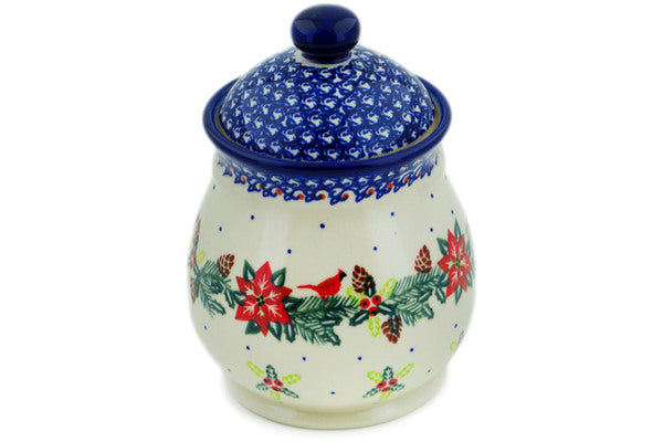 This Cardinal's Home 8" Jar with Lid was handmade and hand decorated in Boleslawiec, Poland by skilled artisans according to old traditional methods. This is a Polish pottery Signature Unikat, which means that it has been hand painted with both sponges and brushes and it is signed by the artist who painted it. Unikat pieces are the most intricate works of art. Larger Unikat items take hours of very careful work to finish. This Polish stoneware is microwave, dishwasher, freezer, and oven safe up to 480°F. It does not contain lead or cadmium. It is part of the Cardinal's Home Collection.