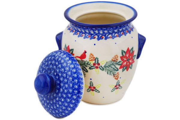 This Cardinal's Home 7" Jar with Lid and Handles was handmade and hand decorated in Boleslawiec, Poland by skilled artisans according to old traditional methods. This is a Polish pottery Signature Unikat, which means that it has been hand painted with both sponges and brushes and it is signed by the artist who painted it. Unikat pieces are the most intricate works of art. Larger Unikat items take hours of very careful work to finish. This Polish stoneware is microwave, dishwasher, freezer, and oven safe up to 480°F. It does not contain lead or cadmium. It is part of the Cardinal's Home Collection.