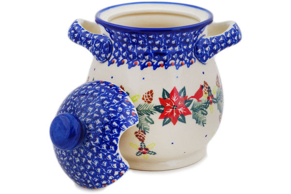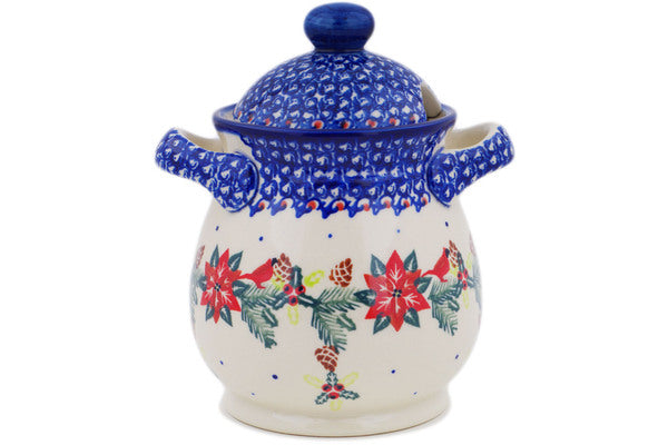 This Cardinal's Home 8" Jar with Lid and Handles was handmade and hand decorated in Boleslawiec, Poland by skilled artisans according to old traditional methods. This is a Polish pottery Signature Unikat, which means that it has been hand painted with both sponges and brushes and it is signed by the artist who painted it. Unikat pieces are the most intricate works of art. Larger Unikat items take hours of very careful work to finish. This Polish stoneware is microwave, dishwasher, freezer, and oven safe up to 480°F. It does not contain lead or cadmium. It is part of the Cardinal's Home Collection.