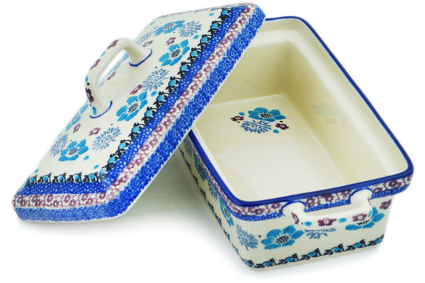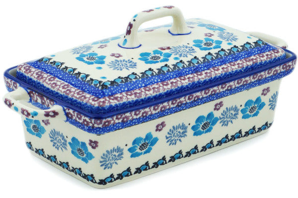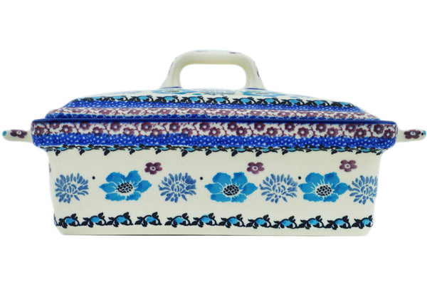 This Blooming Blues 9" Jar with Lid and Handles was handmade and hand decorated in Boleslawiec, Poland by skilled artisans according to old traditional methods. This Polish stoneware is microwave, dishwasher, freezer, and oven safe up to 480°F. It does not contain lead or cadmium. It is part of the Blooming Blues Collection.