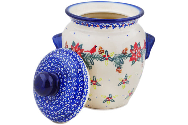 This Cardinal's Home 9" Jar with Lid and Handles was handmade and hand decorated in Boleslawiec, Poland by skilled artisans according to old traditional methods. This is a Polish pottery Signature Unikat, which means that it has been hand painted with both sponges and brushes and it is signed by the artist who painted it. Unikat pieces are the most intricate works of art. Larger Unikat items take hours of very careful work to finish. This Polish stoneware is microwave, dishwasher, freezer, and oven safe up to 480°F. It does not contain lead or cadmium. It is part of the Cardinal's Home Collection.