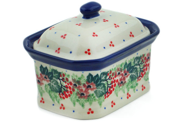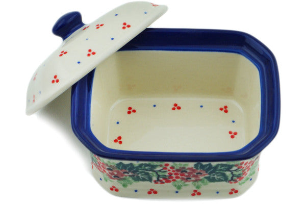 This Rowan Beauty 4" Mini Cake Box 4", Salt Box, was handmade and hand decorated in Boleslawiec, Poland by skilled artisans according to old traditional methods. This Polish stoneware is microwave, dishwasher, freezer, and oven safe up to 480°F. It does not contain lead or cadmium. It is part of the Rowan Beauty Collection.