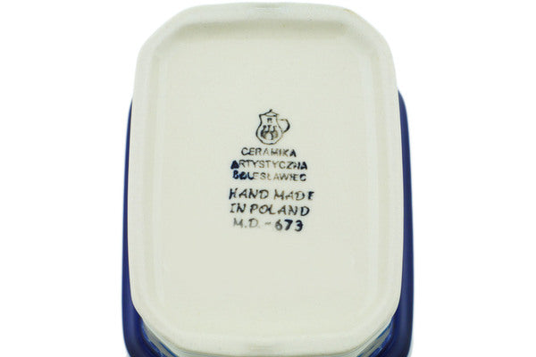This Winter Sparrow 4" Mini Cake Box 4", Salt Box, was handmade and hand decorated in Boleslawiec, Poland by skilled artisans according to old traditional methods. This Polish stoneware is microwave, dishwasher, freezer, and oven safe up to 480°F. It does not contain lead or cadmium. It is part of the Winter Sparrow Collection.