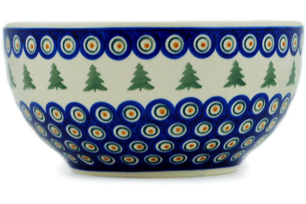 This Peacock Pines 9" Mixing bowl, serving bowl was handmade and hand decorated in Boleslawiec, Poland by skilled artisans according to old traditional methods. This Polish stoneware is microwave, dishwasher, freezer, and oven safe up to 480°F. It does not contain lead or cadmium. It is part of the Peacock Pines Collection.