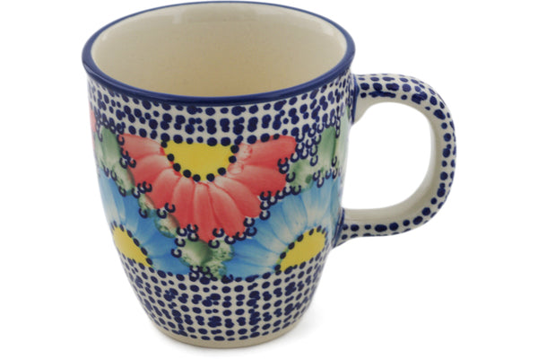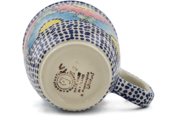 This Spotted Garden 10 oz Mug was handmade and hand decorated in Boleslawiec, Poland by skilled artisans according to old traditional methods. This is a Polish pottery Signature Unikat, which means that it has been hand painted with both sponges and brushes and it is signed by the artist who painted it. Unikat pieces are the most intricate works of art. Larger Unikat items take hours of very careful work to finish. This Polish stoneware is microwave, dishwasher, freezer, and oven safe up to 480°F. It does not contain lead or cadmium. It is part of the Spotted Garden Collection.
