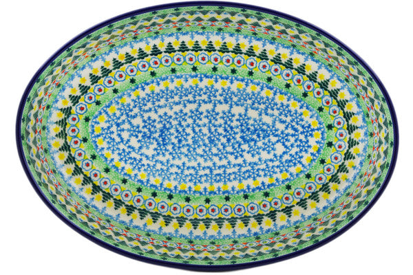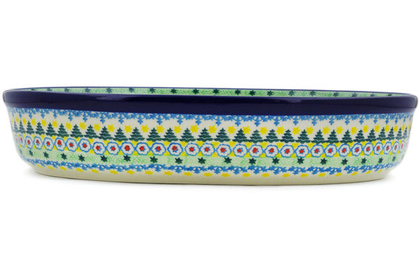 This Christmas Forest 12" Oval Baker was handmade and hand decorated in Boleslawiec, Poland by skilled artisans according to old traditional methods. This is a Polish pottery Signature Unikat, which means that it has been hand painted with both sponges and brushes and it is signed by the artist who painted it. Unikat pieces are the most intricate works of art. Larger Unikat items take hours of very careful work to finish. This Polish stoneware is microwave, dishwasher, freezer, and oven safe up to 480°F. It does not contain lead or cadmium. It is part of the Christmas Forest Collection.
