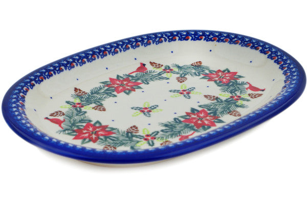 This Cardinal's Home 11" Oval Platter was handmade and hand decorated in Boleslawiec, Poland by skilled artisans according to old traditional methods. This is a Polish pottery Signature Unikat, which means that it has been hand painted with both sponges and brushes and it is signed by the artist who painted it. Unikat pieces are the most intricate works of art. Larger Unikat items take hours of very careful work to finish. This Polish stoneware is microwave, dishwasher, freezer, and oven safe up to 480°F. It does not contain lead or cadmium. It is part of the Cardinal's Home Collection.