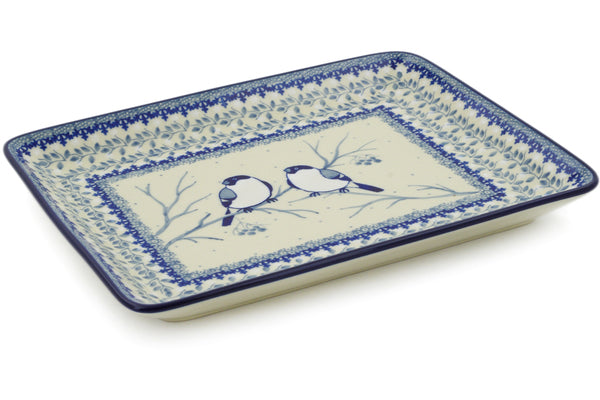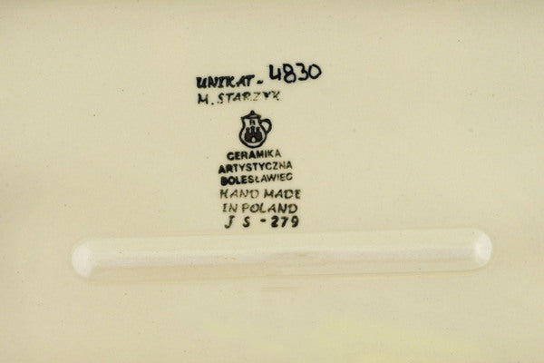 This Waiting Birds 10" Platter was handmade and hand decorated in Boleslawiec, Poland by skilled artisans according to old traditional methods. This is a Polish pottery Signature Unikat, which means that it has been hand painted with both sponges and brushes and it is signed by the artist who painted it. Unikat pieces are the most intricate works of art. Larger Unikat items take hours of very careful work to finish. This Polish stoneware is microwave, dishwasher, freezer, and oven safe up to 480°F. It does not contain lead or cadmium. It is part of the Waiting Birds Collection.