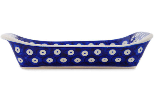 This Yellow Holly Berries 7" Platter with Handles was handmade and hand decorated in Boleslawiec, Poland by skilled artisans according to old traditional methods. This Polish stoneware is microwave, dishwasher, freezer, and oven safe up to 480°F. It does not contain lead or cadmium. It is part of the Yellow Holly Berries Collection.
