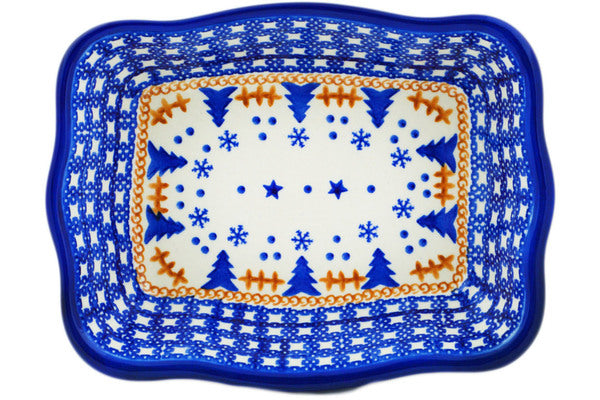 This Winter Snow 8" Rectangular Baker was handmade and hand decorated in Boleslawiec, Poland by skilled artisans according to old traditional methods. This Polish stoneware is microwave, dishwasher, freezer, and oven safe up to 480°F. It does not contain lead or cadmium. It is part of the Winter Snow Collection.