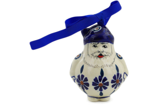 This Peacock 4" Santa Claus Ornament was handmade and hand decorated in Boleslawiec, Poland by skilled artisans according to old traditional methods. This Polish stoneware is microwave, dishwasher, freezer, and oven safe up to 480°F. It does not contain lead or cadmium. It is part of the Peacock Collection.